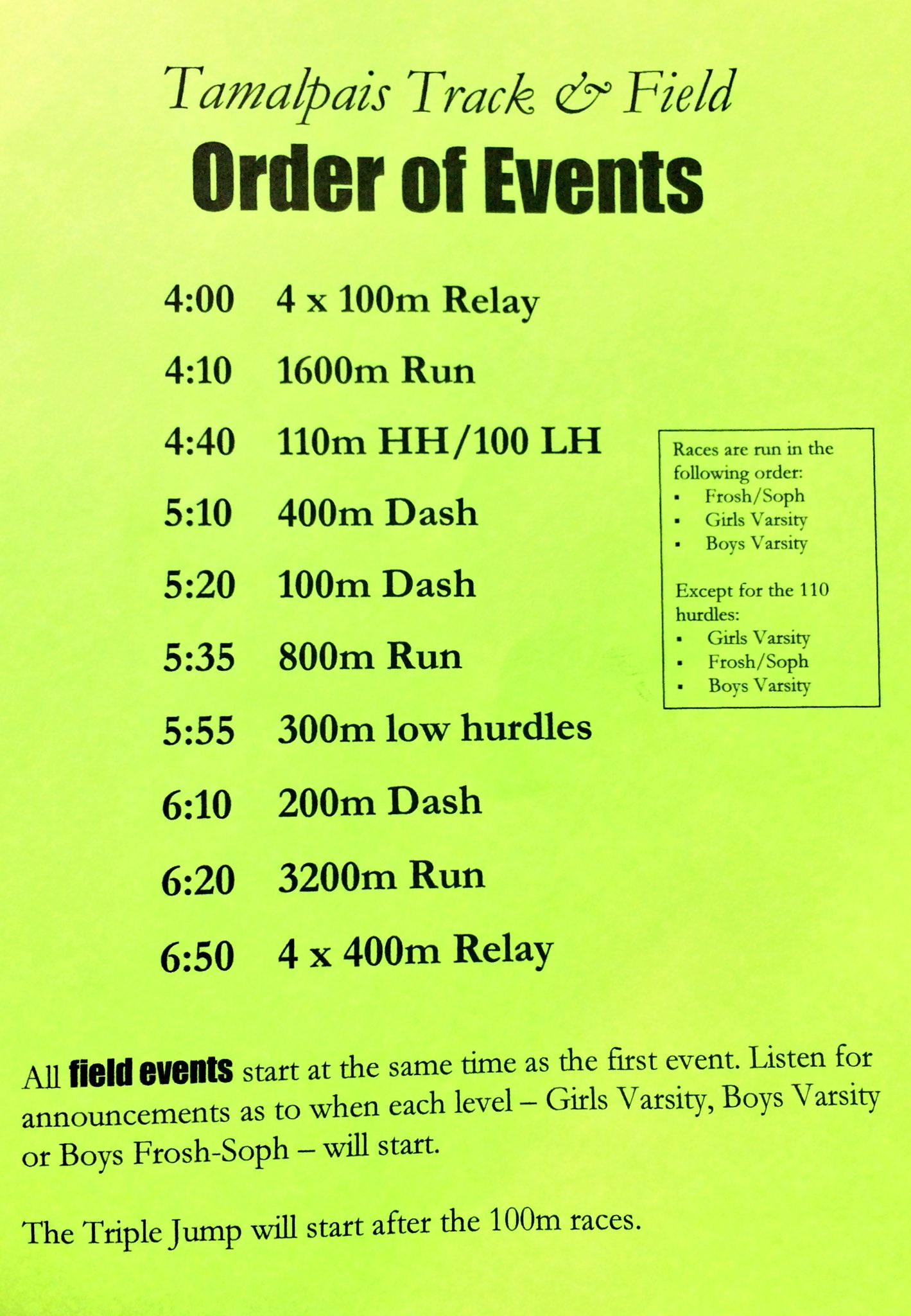 Can you name the men's decathlon events in order?